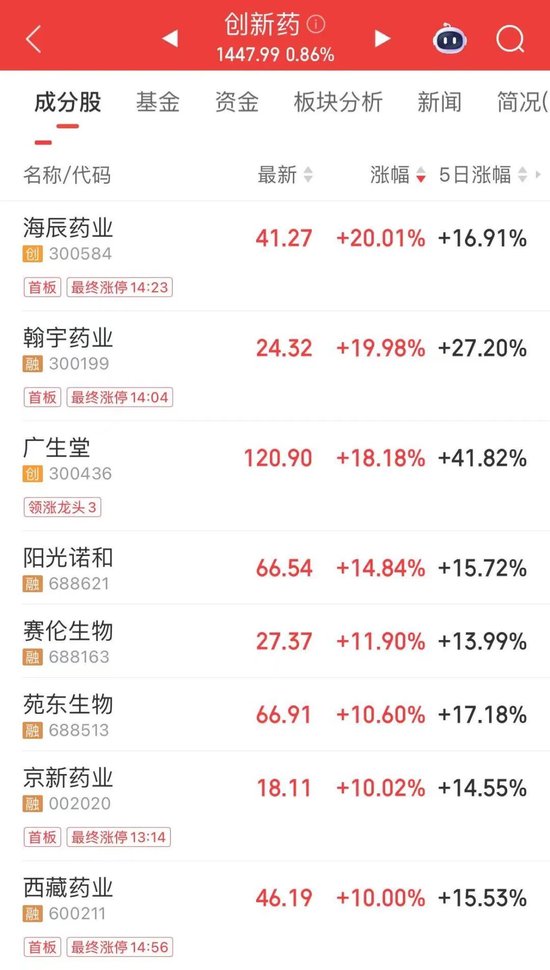 创新药概念股反弹,翰宇药业“20CM”涨停。