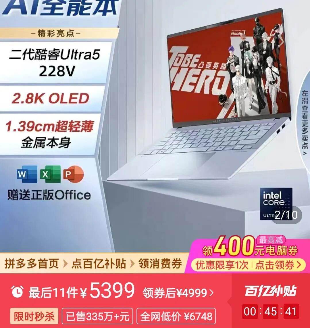 Ultra5 228V+32GB内存+1TB SSD+2.8K 120Hz OLED屏